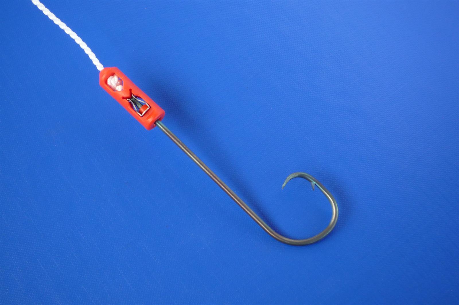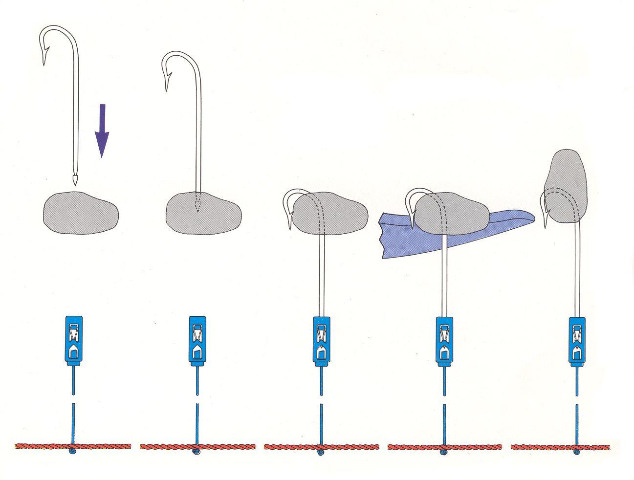 - Deretter kommer en hydraulisk krokavtaker som løsner kroken fra klipset og slipper den ned i en kasse