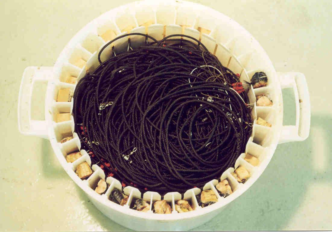 God tilgang på ferdig egnede stamper fra egnestasjonen på land gjør at driften ombord blir enkel og effektiv. Lina kan settes på tradisjonell måte over en sjølsetter. Dette gir slakk line som synker fort. Dermed unngår man fugler og lina kommer raskt i fiske.